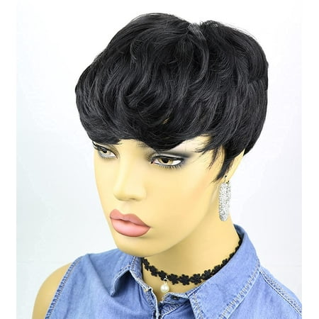 Short Pixie Cut Human Hair Wigs With Bangs For Black Women Short Virgin Human Hair Pixie Wigs Short Layered Human Hair Wigs For Women 1b Walmart Canada